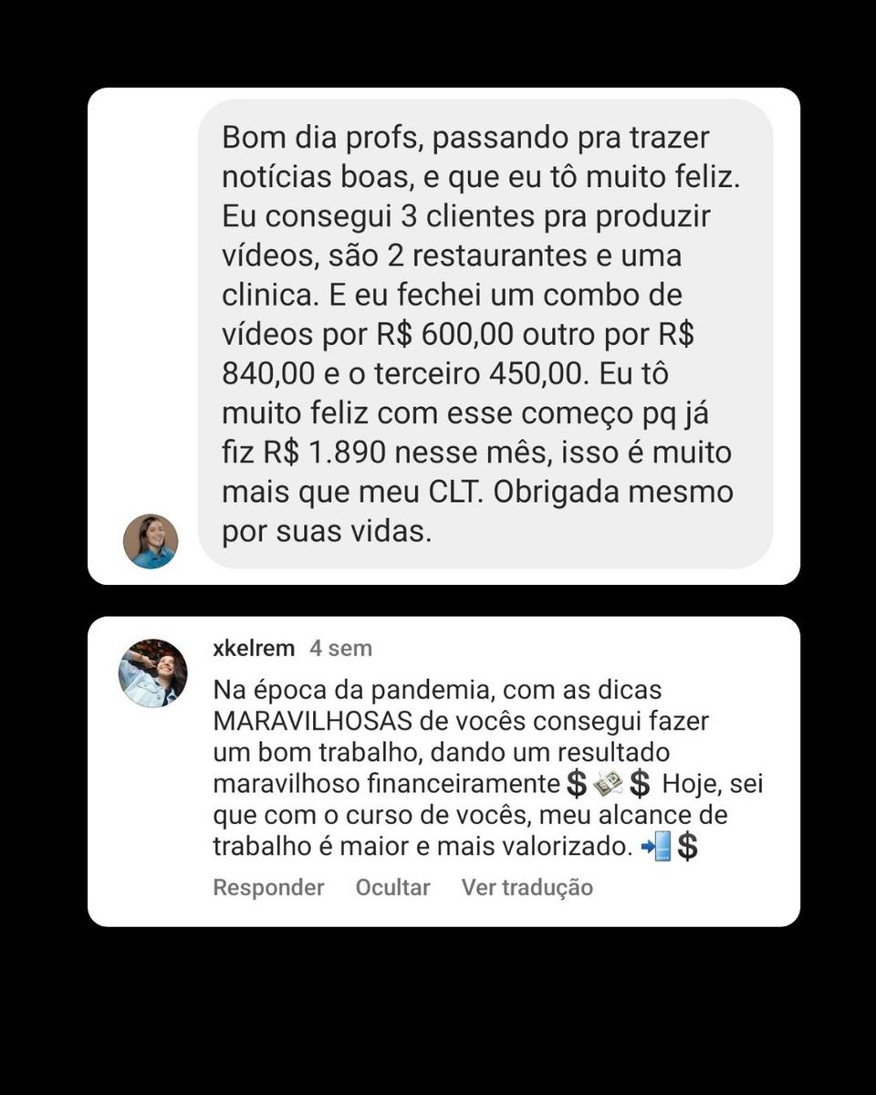 Aqui você vai aprender habilidades avançadas em criação e edição de vídeos, para explorar novas oportunidades de negócios, como oferecer serviços de produção de vídeo para outros empreendedores ou empresas, ou até mesmo monetizar seu próprio conteúdo em plataformas de vídeo online.